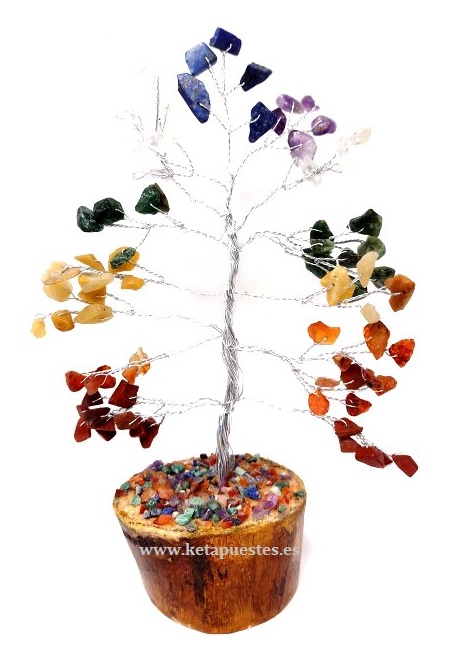Incluye un variado de chips minerales naturales (Amatista, Aventurina verde, Cuarzo cristal, Carneola, Jaspe rojo, Calcita naranja y Lapislázuli) |