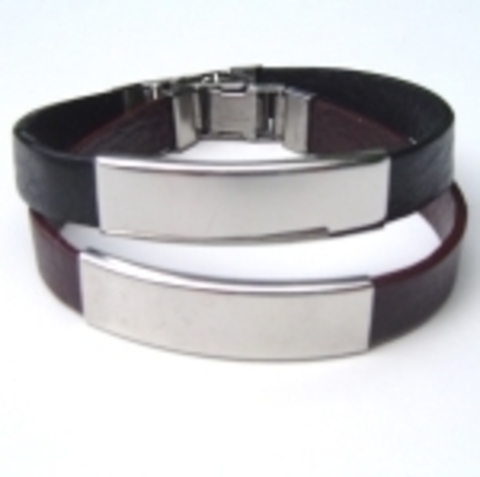 Stock: 18 unidadesPulsera de cuero de 1cm de ancho con adornos y cierre de acero |